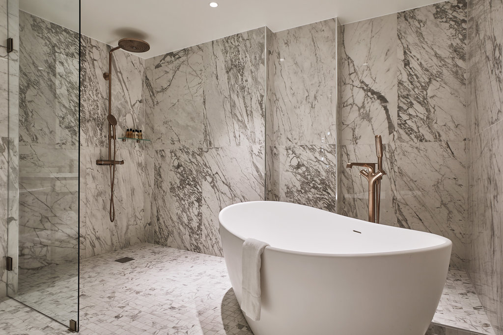 穿过青铜门,您会发现酒店的每一个角落都充满了轻松、活力的现代艺术氛围。现代的设计风格柔化了坚硬的大理石内饰,珠宝色调的家具和高高的玻璃天花板为银行大厅餐厅引来一室的明亮光线。客房和套房的天然色彩自带一种抚慰人心的力量,定制的艺术品为空间增加了个性的特色。在某个秘密的地方,还隐藏着鸡尾酒吧和屋顶平台。