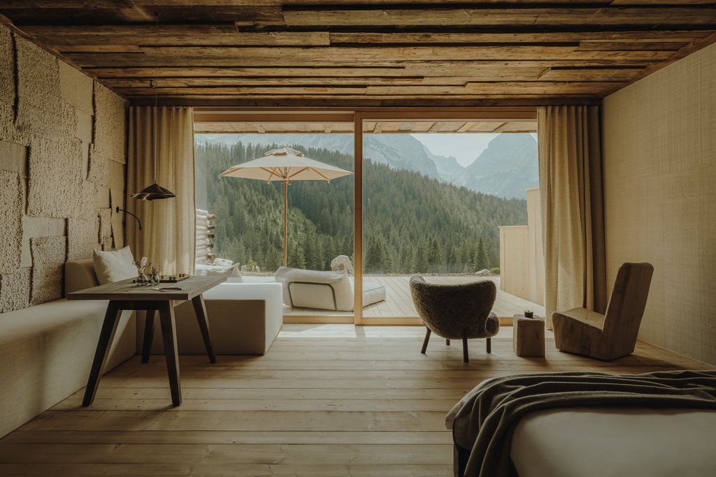 奥地利的厄瓦尔德(Ehrwald)为艾瑞罗酒店打造了令人敬畏的场景。每一个元素都经过精心设计,与大自然和谐共存:卧室的木材来自当地森林的可持续采伐,玻璃幕墙将视线引向惊艳的提洛尔(Tyrolean)景观。极少的科技设备,最大化了风景的体验。冬天里,开放式壁炉噼啪作响。屋顶套房独享私人桑拿。这里通向充满山岳灵感的水疗中心的完美序曲。