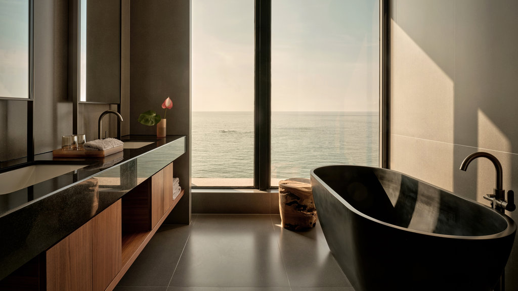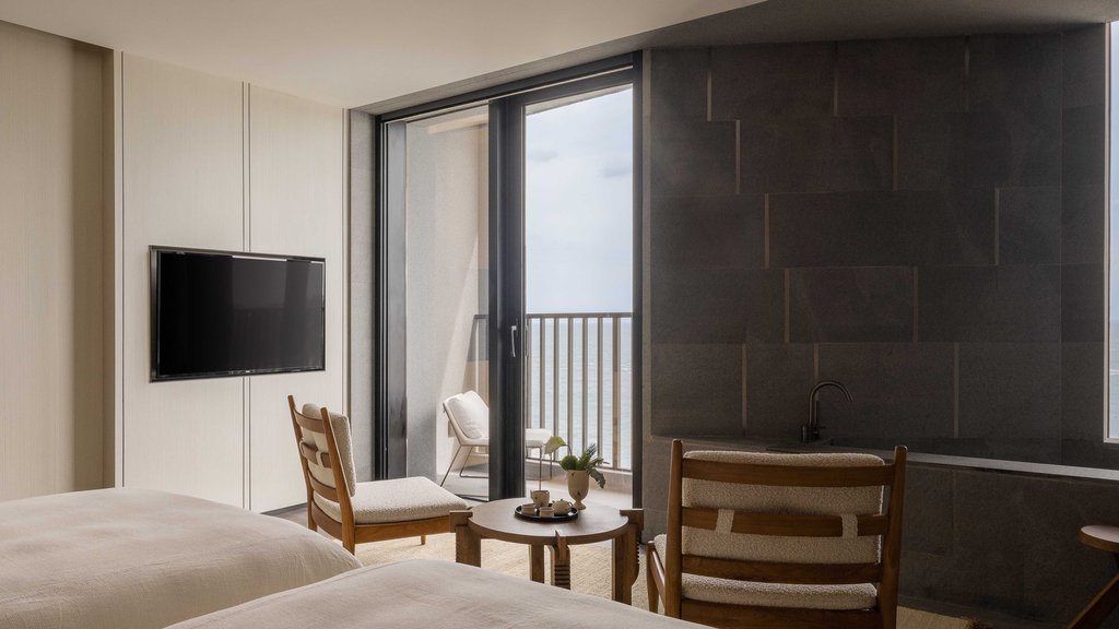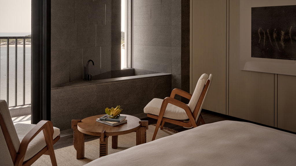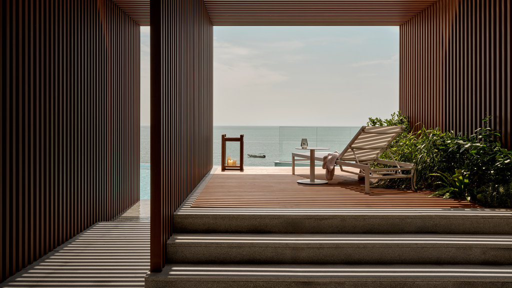 酒店的客房毗邻月牙形海滩,将海景与宁静的中性色调结合在一起,点缀着设计师家具,看起来就像电影布景。精心布置的客房和宽敞的套房充满了舒适与奢华,共享空间形成了一片连绵不断的柱子和光影的诱惑。您可以在礁石酒吧(Bar Reef)手里拿着葡萄酒眺望无敌的海景,或参观雪茄吧(Cigar Bar),或在阁楼茶室(Tea Loft)享受本地的茶文化,并享用当地手工小吃。也可以在与天地线持平的弯曲无边泳池中畅游。