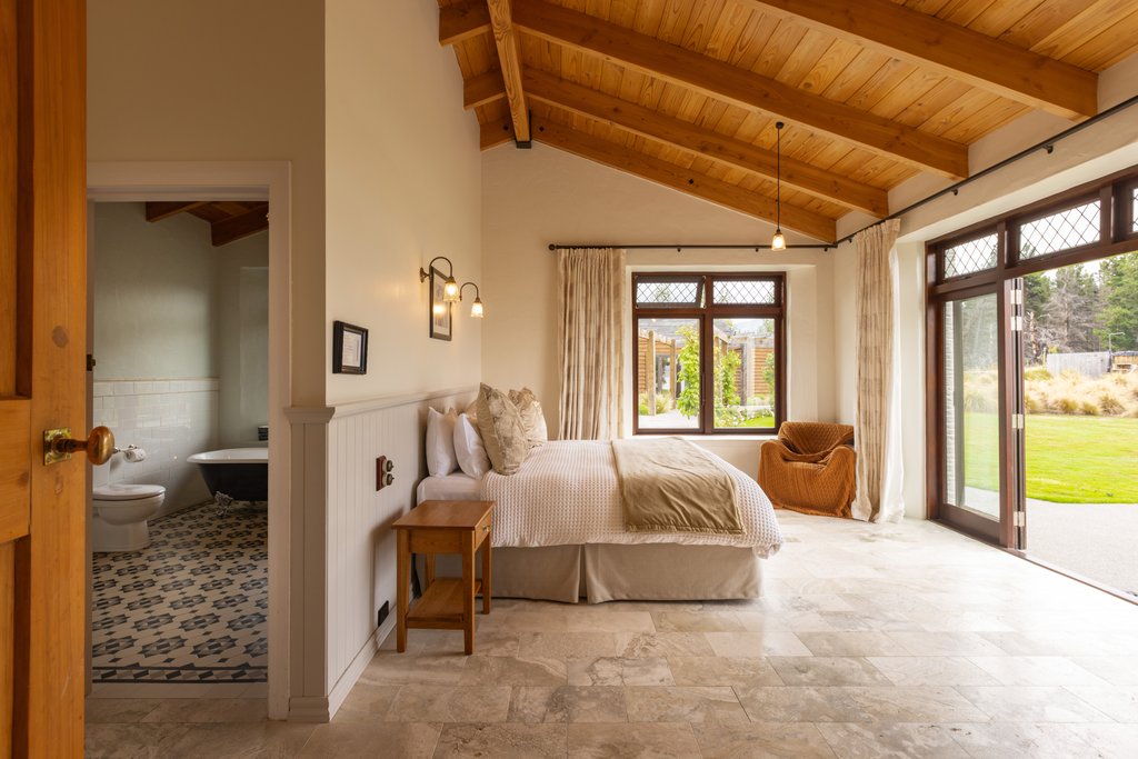 每栋别墅均陈设精美:观景落地窗将湖山盛景框入室内,天然实木材质尽显雅致格调,舒适皮质沙发传递惬意质感。阿什利・麦肯齐别墅(Ashley Mackenzie Villa)可俯瞰普卡基湖(Lake Pukaki),直对奥拉基库克山(Aoraki Mount Cook)的雄奇身姿;若你舍得移开目光,更能独享扇尾鹩水疗中心(Fantail Spa)的专属奢享。冰碛别墅(Moraine Villa)的清晨,本奥豪山脉(Ben Ohau mountain range)的标志性全景映入眼帘 —— 高挑穹顶、开放式壁炉与私人户外温泉泡池,共同勾勒出惬意栖居图景。若偏爱开阔空间,普卡基庄园大宅(Pukaki homestead)堪称首选:大型开放式餐厅,客厅搭配三角钢琴,气派非凡;主区域旁设有温馨休憩角与影音室,为独处时光注入悠然暖意。