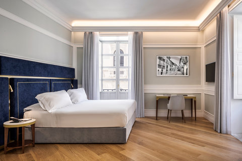 客房与套房尽显西西里低调奢华之风,拱顶天花板、古董家具相得益彰,中性色调搭配地中海蓝的柔和色系,营造出宁静氛围。奢华的浴室与清爽的床品带来极致舒适体验,精心挑选的艺术品与柔和的海滨光线,处处彰显着这座岛屿的独特风情。若想拥有更特别的体验,不妨选择带有法式阳台的套房,凭栏远眺密涅瓦广场 —— 无论是沐浴清晨阳光,还是领略这座历史广场的永恒魅力,这里都是绝佳之选。