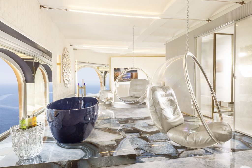 酒店的装饰极为时尚,同时具有清新、简朴之风。室内雕塑、古董物件、考古文物和现代艺术作品摆放讲究,室外设计满足日光浴、游泳和湾景欣赏需求。