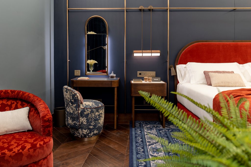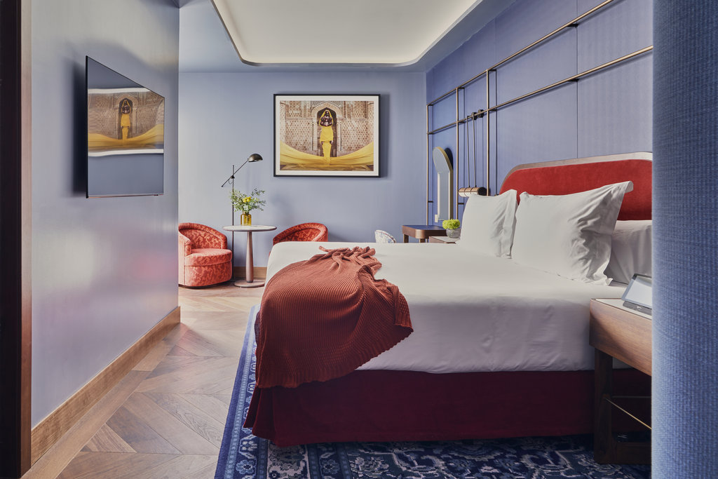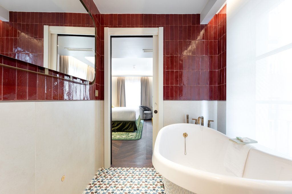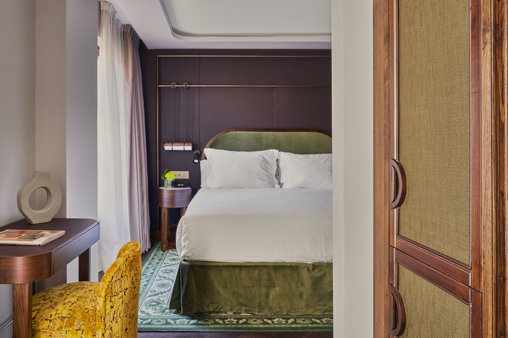您将通过“会员专用”图书馆入口进入酒店,进入由翡翠墙和天鹅绒窗帘组成的大厅。古色古香的镜子和凹形的木质天花板增添了俏皮神秘的感觉——这一色调反映在色彩斑斓的天空休息室的屋顶上。奢侈不止于此。每间客房都洋溢着酒店独特的魅力:温暖、深邃的色调和青铜风格,浪漫的灯具和镜子,浴室的灵感来源于阿尔罕布拉宫的玻璃马赛克。