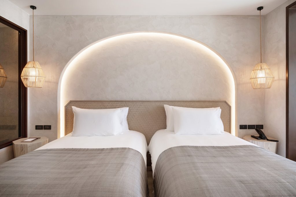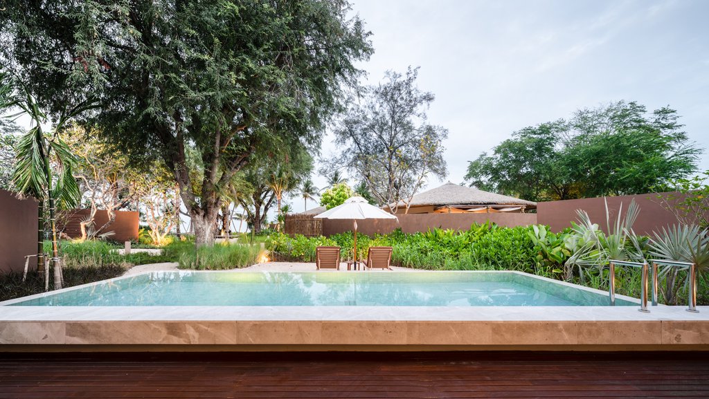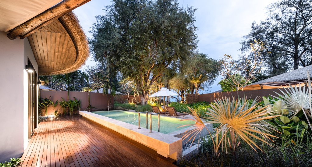 碧绿的海水轻拍着海岸,白色沙滩与棕榈树间点缀着吊床和草制阳伞。娃拉华欣(VALA Hua Hin)在细节之处尽显奢华。这座海滨隐匿之所完美融合了遁入自然的宁静与现代舒适。加之泰国湾的无垠美景尽收眼底,这里无疑是观赏难忘日落与壮阔海景的绝佳位置。